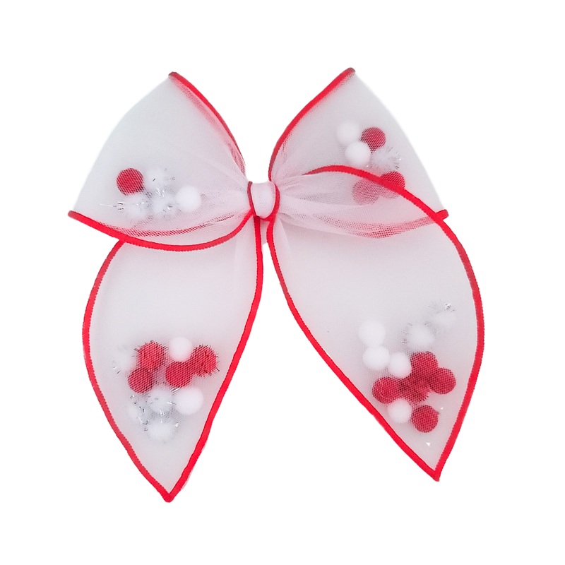 Ava Hair Bow | Hand-Tied Bow | Red & White Pom Shaker