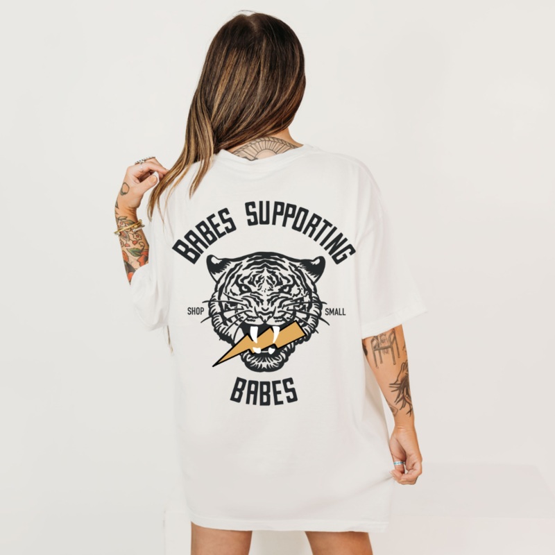 Babes Supporting Babes!Shop smallHeavy 100% Cotton tee.Unisex sizing- size up for oversized lookCare Instructions: Machine wash on delicate cold, inside out and hang to dry!DetailsMade in United StatesCare Instructions: Machine washFabric: 100% cottonWeigh