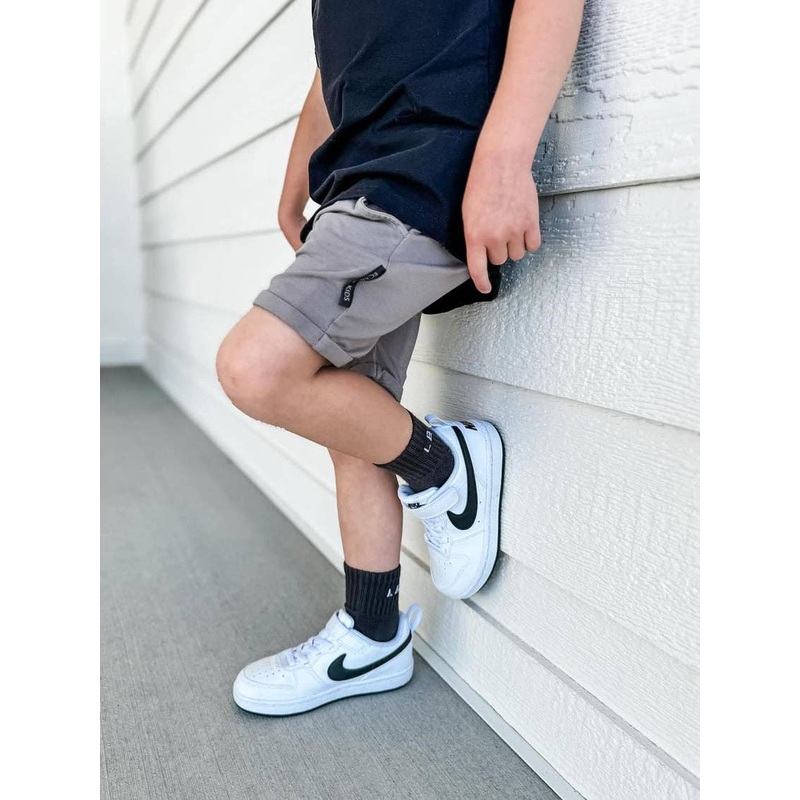 Experience ultimate comfort and style with our Bamboo Shorts in Gunmetal! Made from soft and durable bamboo, these shorts will keep you feeling comfortable all day long. Designed with tough kids and delicate skin in mind, these shorts can withstand the hardest day of play. Get yours today and feel the difference bamboo can make!FEATURES: * Our ultra-soft bamboo fabric is safe and gentle on eczema-prone and sensitive skin and is a great texture for those with sensory processing disorders. * Made from 290GSM bamboo fabric making them extra stretchy, yet durable for many wears. * Bamboo is naturally temperature regulating which means it will keep them comfortable no matter the weather.