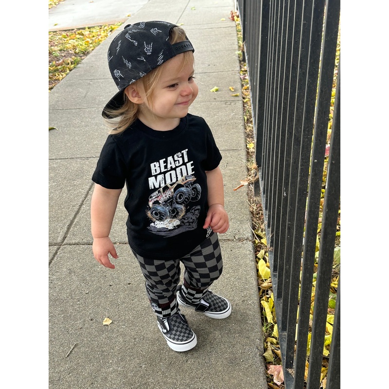 Our "Beast Mode/Rock Rampage" shirt is a market best-seller, and its a must-have for monster truck fans! Featuring a bold truck graphic thats full of energy and rock-inspired style, this tee is ready to bring the power wherever your little rocker goes.