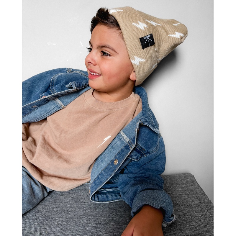 Our beanie sizing is true-to-size off of growth charts and the childs age. If you your child is at the end of a cusp or youknow your child is larger than average it might be best to size up rather than to size down.