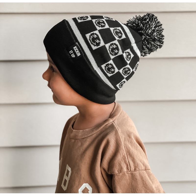Black Smiley Check Beanie|Infant 4 Months-12 Months|Toddler 13 Months-4.5 Years Old|Youth/Small Adult- 5 Years and Up