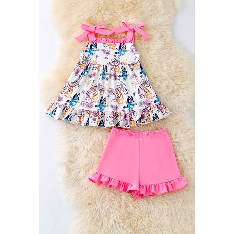 Be the first to review “Blue dog printed tunic with ruffle and pink shorts”