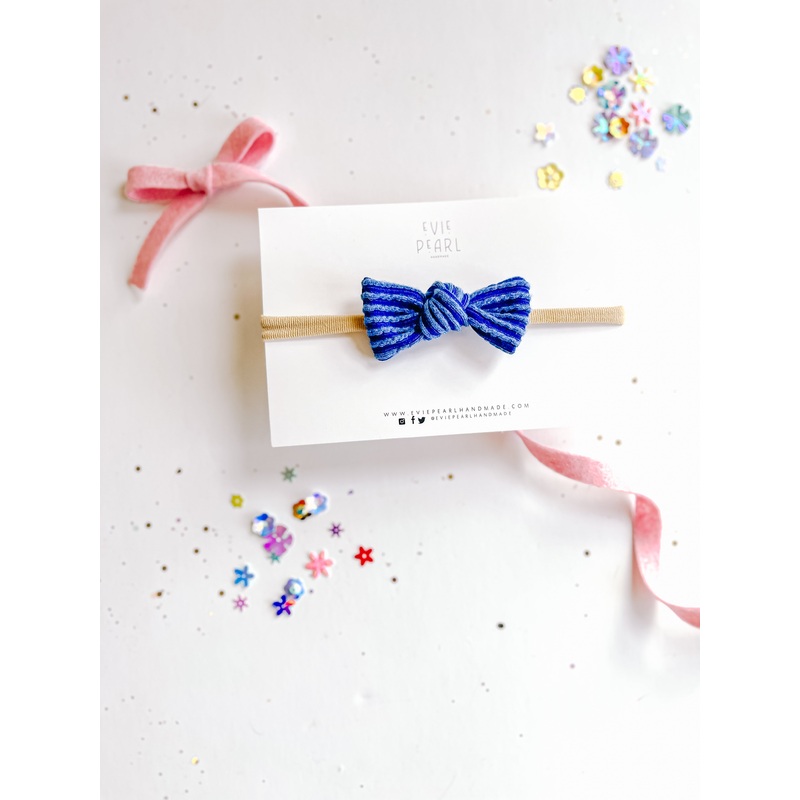 Our **Small Ribbed Knot Bow on Nylon Headband for Babies** offers the perfect mix of style and comfort. This **handmade bow** is soft, stretchy, and ideal for newborns and babies, making it perfect for everyday wear.