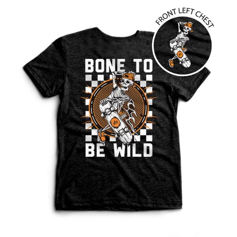 Let everyone know your love for skeletons, skateboards & everything Halloween with this new ‘Bone to be Wild’ kids tee designed exclusively for the Ledger Nash brand.
