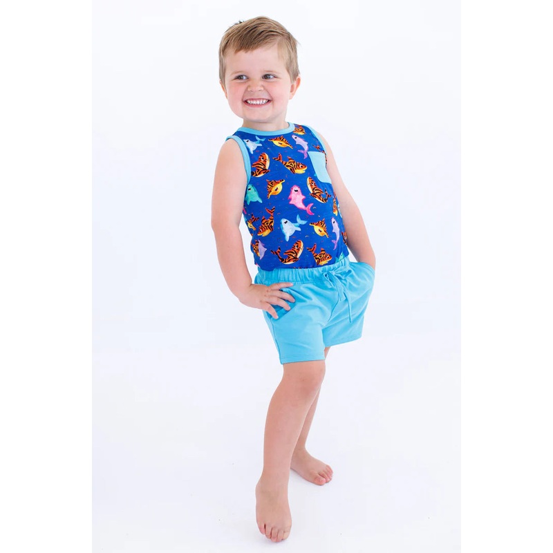 The perfect summer daywear essentials for your little one! The added pocket is the most adorable touch. Lightweight and breathable viscose from bamboo means this shirt and short set is great for wearing together or layering with other pieces to make the cu
