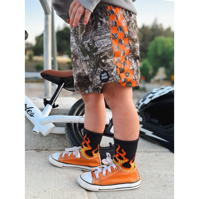 Get your little one ready for any adventure with our Camo Checkered Boardshorts! These playful shorts feature a unique camo print with a pop of orange checkered design. Perfect for everyday wear, they’re sure to be your little one’s go-to choice for style and comfort.