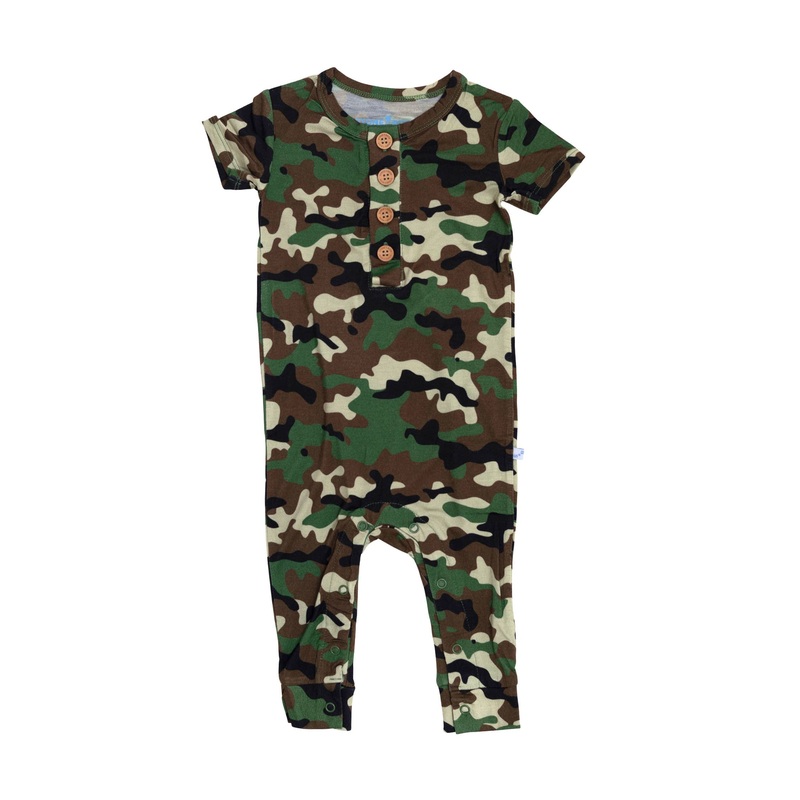 The easiest outfit of all time. Our short sleeve henley takes style up a notch.-95% Viscose from Bamboo, 5% Spandex-Henley buttons are wood with Stone and Rose branding-Snaps closure at legs for easy on/off-No-itch tagless back label-Fit is designed to be