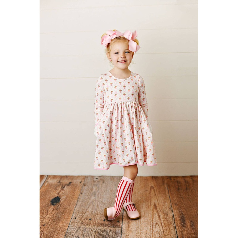 SWOON BABY SCALLOPED CANDY CANE EMBROIDERY TWIRL DRESS95% COTTON 5% SPANDEX