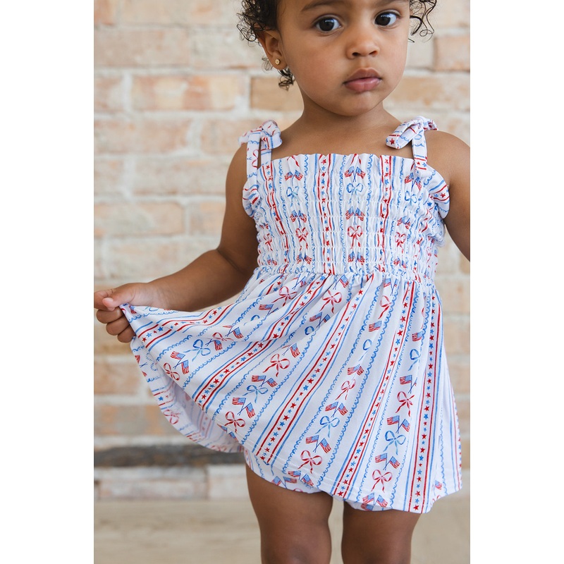 Introducing our smocked diaper cover dress a classic piece designed to grow with your little one. Crafted from the finest buttery soft bamboo, this darling set features an elegantly smocked dress with adjustable tie sleeves, paired with a matching diaper cover for a complete, polished look.