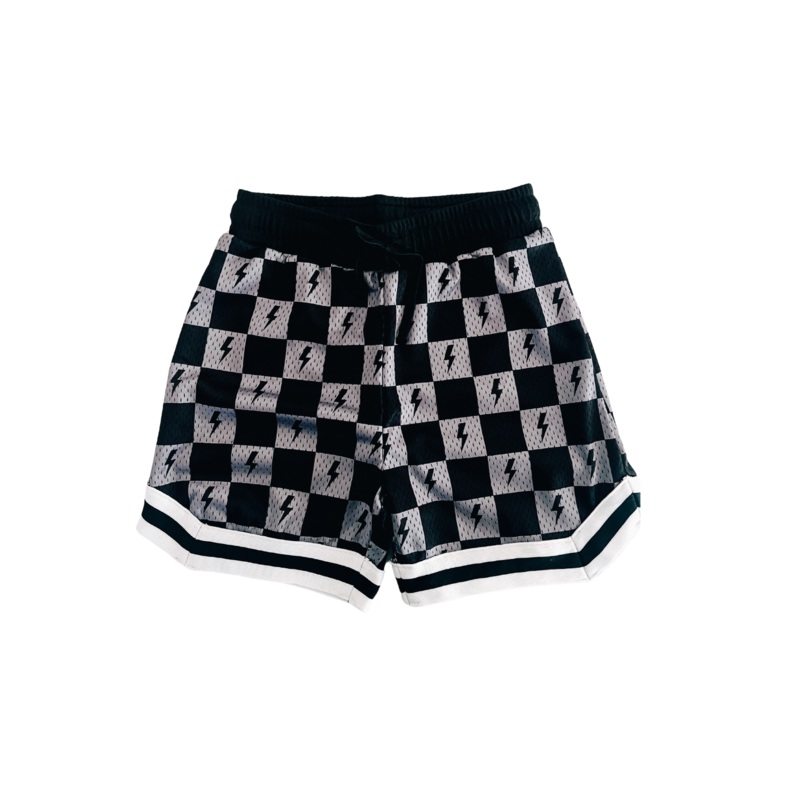 Checked Out Gym ShortsPRODUCT DESCRIPTION:Mesh Gym ShortsDouble lined for extra thickness and comfortVertical PocketsUsable drawstringBlack/Grey Checkered DesignSizes 2t- 8/9PRODUCT CARE:90% Nylon, 10% SpandexMachine Wash on ColdTumble Dry on Low