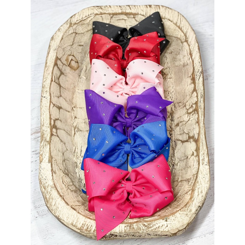 Add some sparkle to your hairstyle with this Clear Rhinestones Texas Size Hair Bow. Perfect for adding some Texas-size charm to any outfit, this playful bow is sure to turn heads. So, go ahead and make a statement with some extra bling in your hair!How big