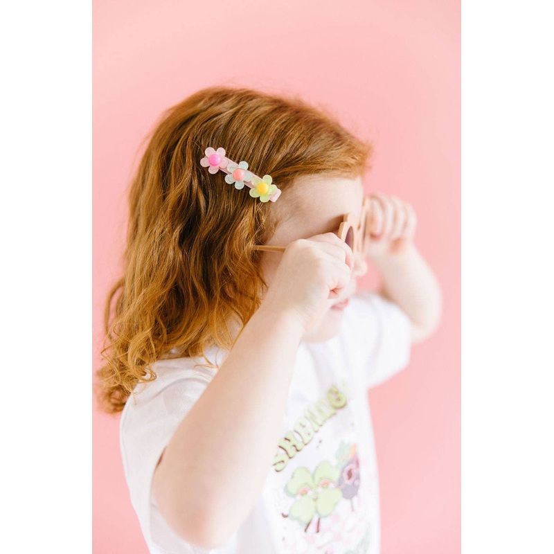 This listing is for 2 daisy clips. You will receive a variety of colors of daisies: pink, purple, white, green, orange, blue, mint and more! Each clip is lined with pink velvet and secured to a large right side alligator clip that nicely grips all hair types.