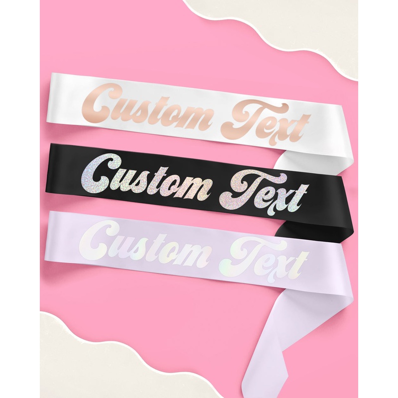 Make it personal. || See all font options here!Sash Measurements: 3" wide and 70" long total Each sash comes packaged with a silver pin If your logo is longer than 15 characters, we will automatically make the font a little skinnier to accommodate for the
