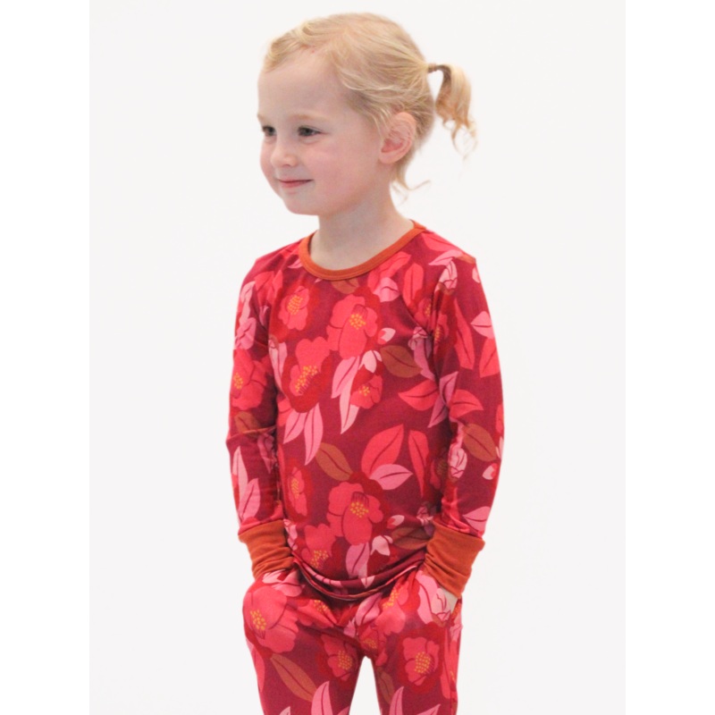 Be anything but basic in this vibrant fall floral print!Features:Made in the USAIn these photos,Lucy is4 years old and wearing size 3T. Lucy is petite for age (20th percentile for height) and is comfortable with room to grow in this size.Crafted from the s