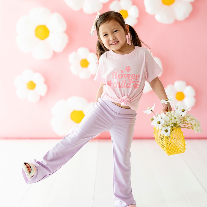 Flower ChildFeatures & Sizing*Crewneck, pullover styling*Short sleeves*Coral or Teal PrintMaterials & Care*Soft Feel *100% Cotton - Natural, White and Black, Pink*50% polyester, 25% combed & ringspun cotton, and 25% rayon - Ice Blue & Peach*Machine wash co