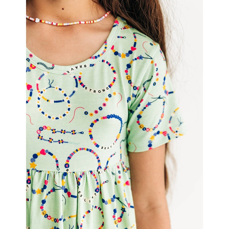 Bamboo Twirl Dress for girls! Crafted with eco-friendly bamboo fabric, this dress offers style and sustainability. Perfect for ages 2-8, it's soft, breathable, and gentle on the skin. With a twirl-worthy design and convenient pockets, it's the ideal blend