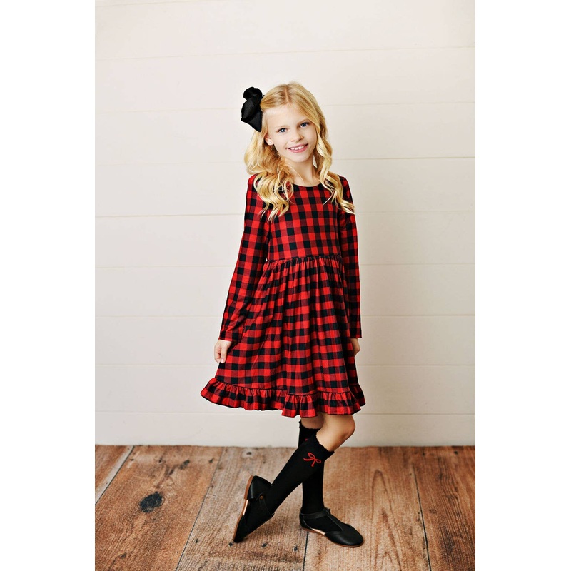 Girl Holiday Butterknit Buffalo Plaid Dress, perfect for the Holiday Season!
