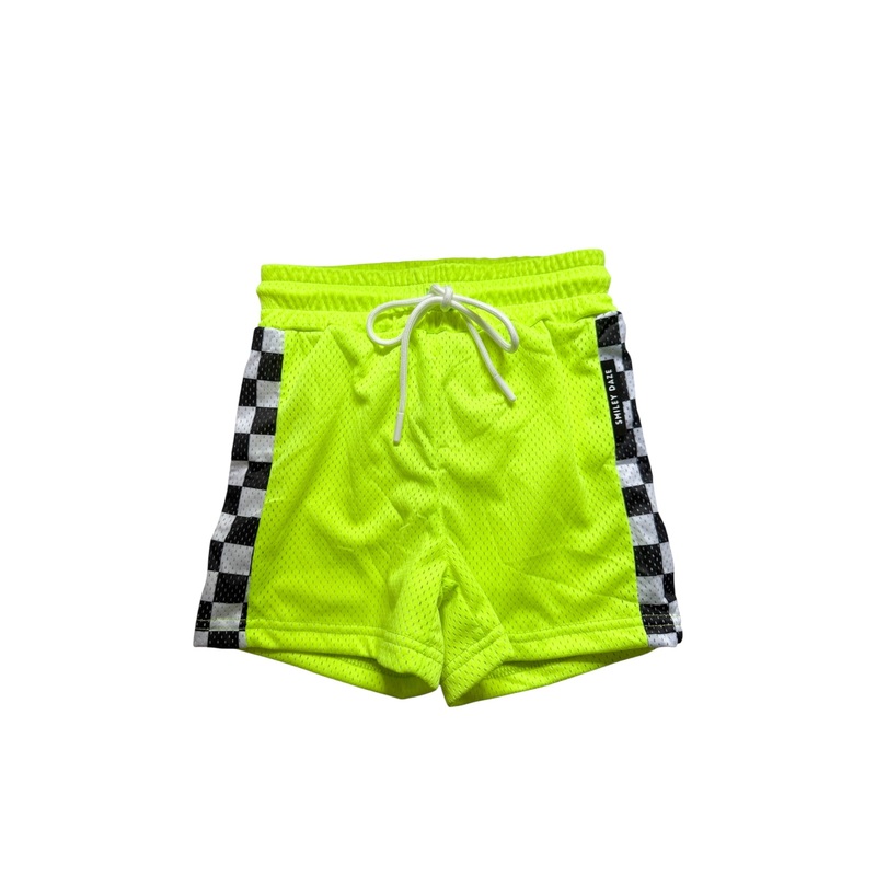 Green means go and these mesh shorts are built for nonstop play. Featuring bold neon fabric with black and white checkered side panels, these breathable mesh shorts bring all the street vibes with max comfort. The elastic waistband and adjustable drawstring give the perfect fit for your little mover.
