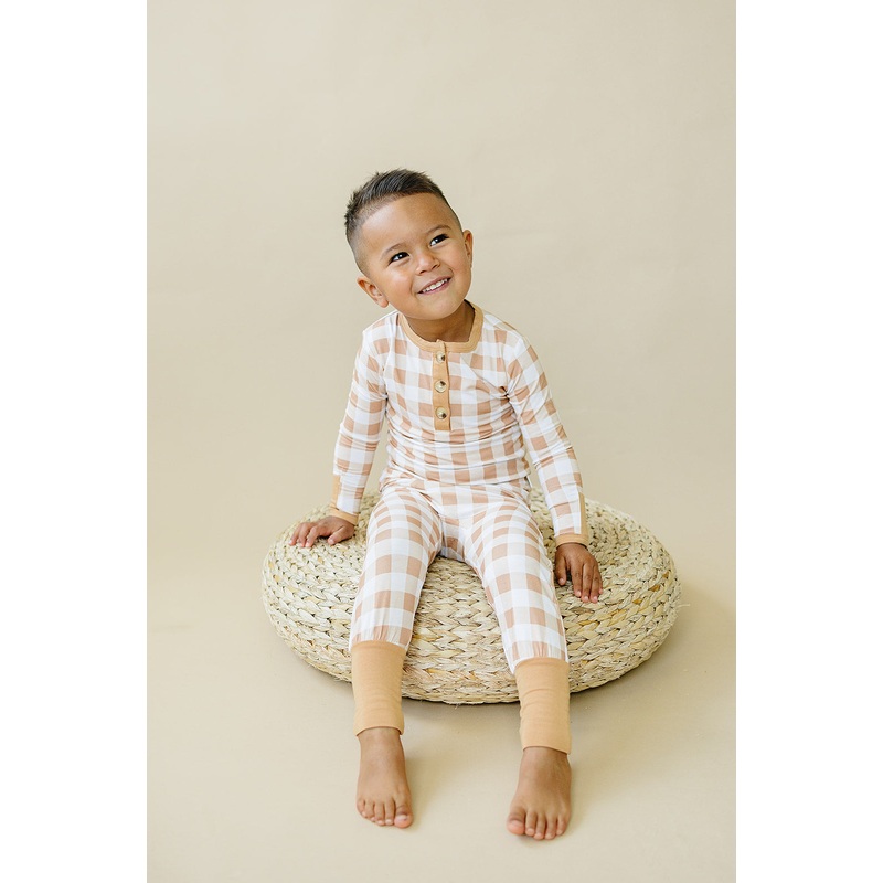 Golden Gingham 2pc Henley Bamboo Pajamas