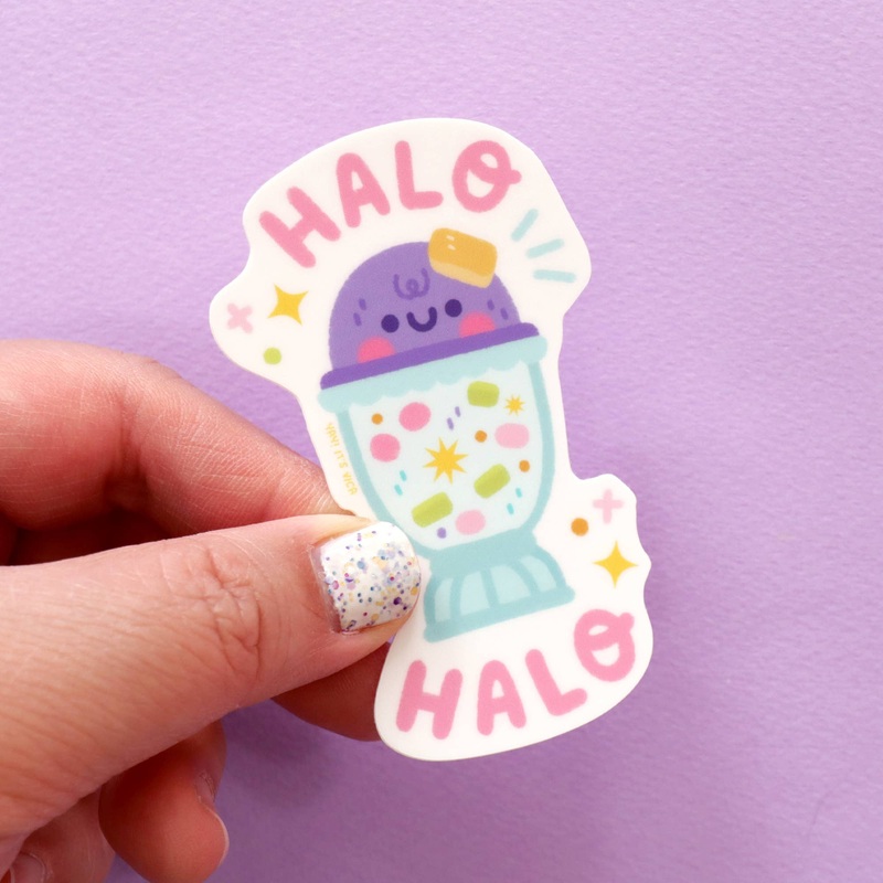 Halo Halo is a delicious Filipino dessert that’s perfect for summer or any day you’re craving a cold treat! Place this durable waterproof sticker on your laptop, sketchbook, journal, water bottle, or anywhere else that might help brighten your day. This is an original illustration by Vica Lew, printed on premium matte vinyl sticker paper, and is approximately 2.5×3 inches.
