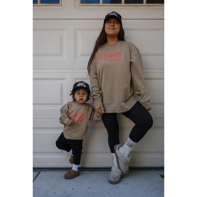 Hell Raisin' CrewneckPrinted on our favorite, super soft & super oversized AK Crew. I do not recommend sizing up. No returns on Holiday items. For matching toddler, see separate listing.SM-2XLAK Clothing Co. designs, prints, and is hand-made here in the PN