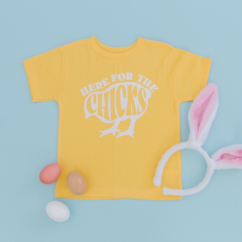 Here for the ChicksFeatures & Sizing*Crewneck, pullover styling*Short sleeves* Navy, Yellow or White PrintMaterials & Care*Soft Feel *100% Cotton - Navy*52% Airlume combed and ring-spun cotton, 48% poly - Heather Yellow Gold and Heather Blue*Machine wash c