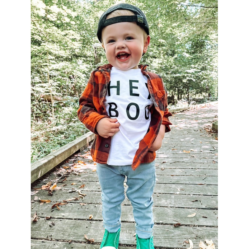 Hey Boo Graphic TeeThe perfect neutral Halloween Tee does exist! Printed on Bella Canvas white tee, 100% cotton. TTS.AK Clothing Co. designs, prints, and is hand-made here in the PNW. With these made to order items, please allow 7-10 business days (Mon-Thu