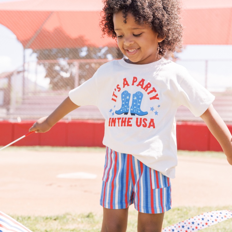 It’s A Party in the USA Boots|2T|3T|4T|5T|Youth Small|Youth Med|Youth Large|Pink|White|Ice Blue|Natural|Peach