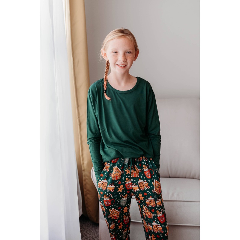 Our Christmas Collection is guaranteed to keep your family comfy and cozy this Holiday Season! Made from soft bamboo lyocell, these jammies are perfect for sleeping or playing in comfort. Say goodbye to stiff, uncomfortable pajamas and hello to relaxation in style. Product Details: * This set includes joggers with a solid long sleeve top. * Buttery Soft Material: 95% Bamboo Lyocell , 5% Spandex * Tag-less Design perfect for sensitive skin *Not intended for sleep