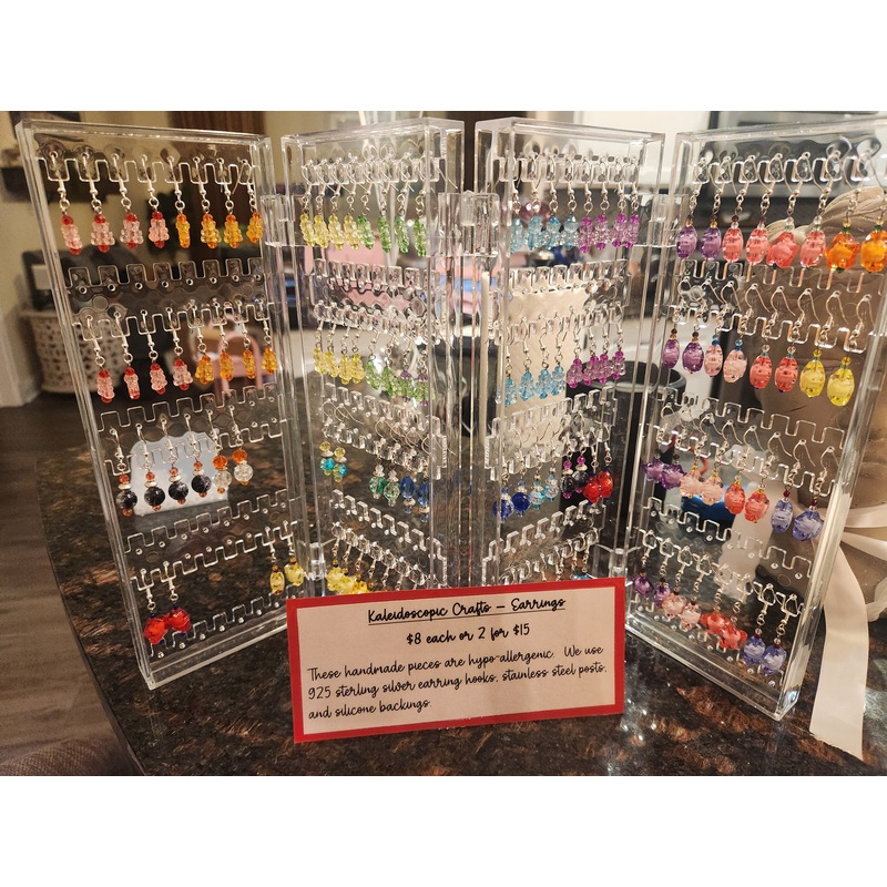 These handmade pieces are hypoallergenic. We used 925 Sterling Silver earrings hooks. Stainless steel posts and silicone backings.