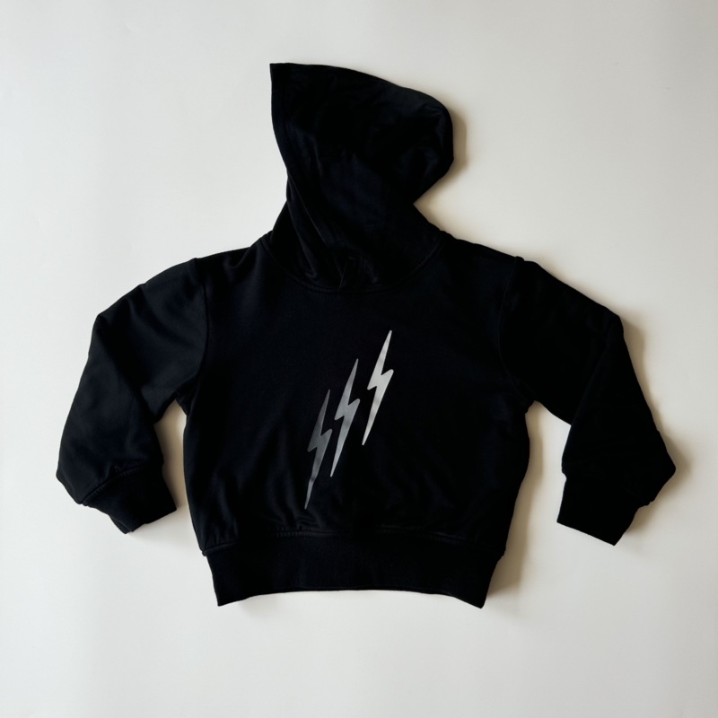 Triple sparks equal triple the rad vibes. This sustainably made bamboo hoodie is the real life blanket that you will wish came in adult size. Adorned with three repeating signature LRT sparks, this monochrome dream is about to be the best layering piece in your LRT’s wardrobe.This hoodie runs true to size, but if you’re unsure we recommend sizing up!Oeko-Tex Standard 100 bamboo.Tagless for the ultimate sensitive kids!Buttery-soft and ultimate stretch.Designed by a mama in Charlotte, NC.For best upkeep, we recommend machine washing on cold and tumble dry on low.