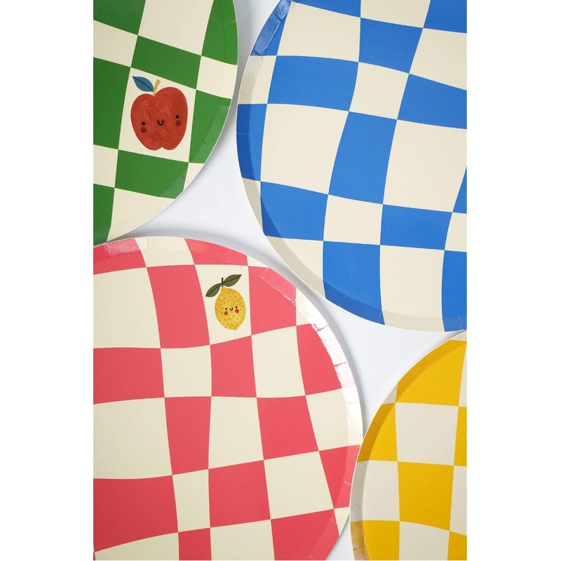 These checkered paper plates come in four unique colors (3 of each). Pair these up with our fruity cutie desert plates for the perfect finishing touch!