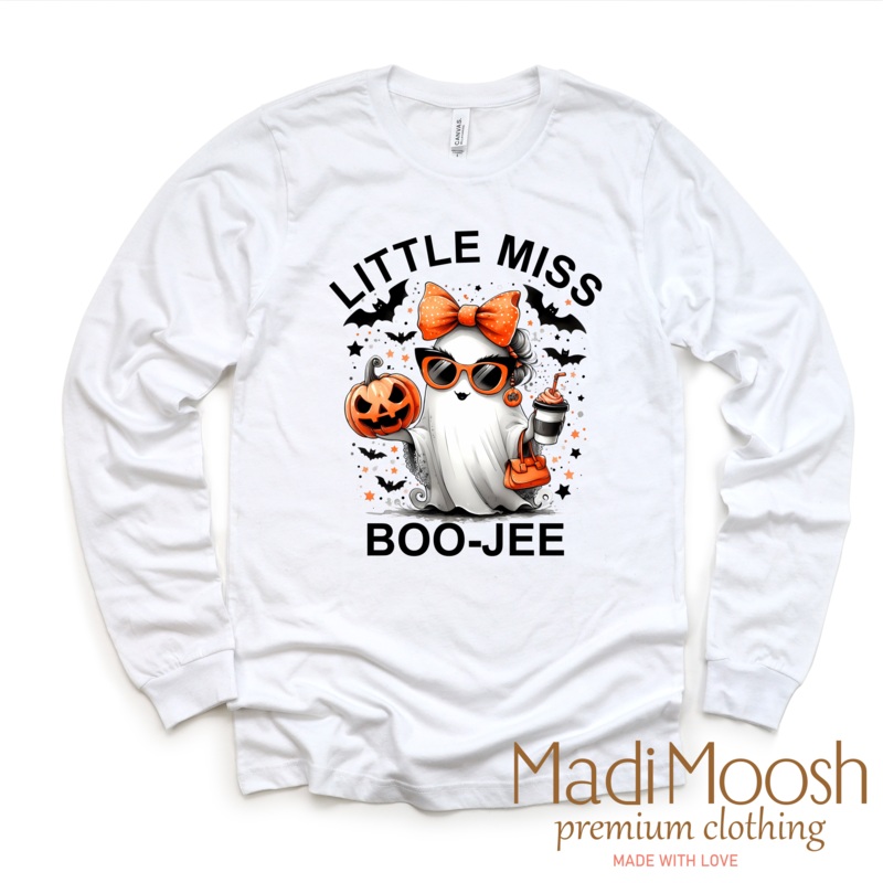 Little Miss Boo-Jee Halloween Tee – Long Sleeve White Shirt