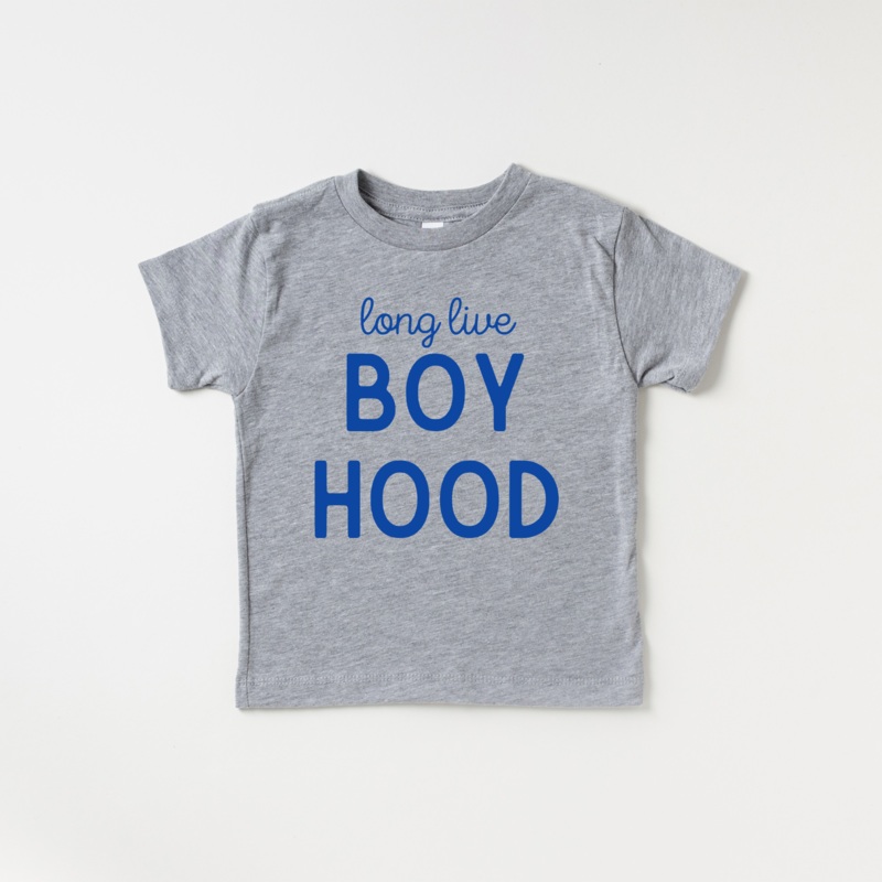 Features & Sizing*Crewneck, pullover styling*Short sleeves* Royal Blue PrintMaterials & Care*Soft Feel*100% Cotton - Natural, White*50% polyester, 50% Cotton - Grey and Yellow*Machine wash cold, dry flat*Iron inside out