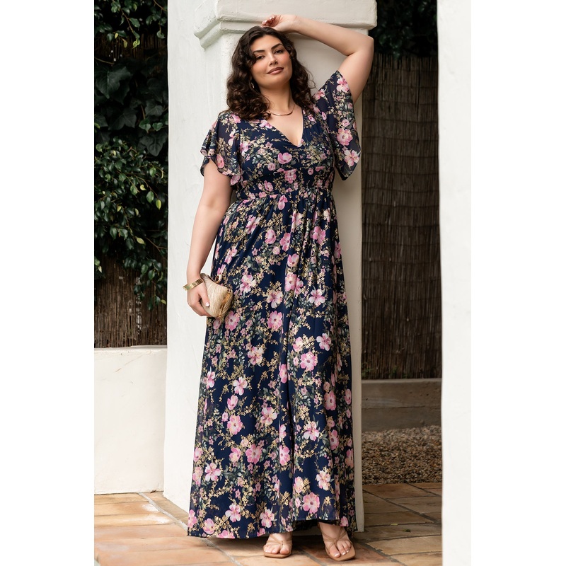 BalticBornexclusive styleAn adorable dress just for youNavy blue with a pink printGorgeous metallic detailing throughoutHigh-quality chiffon material that flows beautifullyV-necklineShort flutter sleevesSmocked waist for a comfortable fitPull-over styleFul
