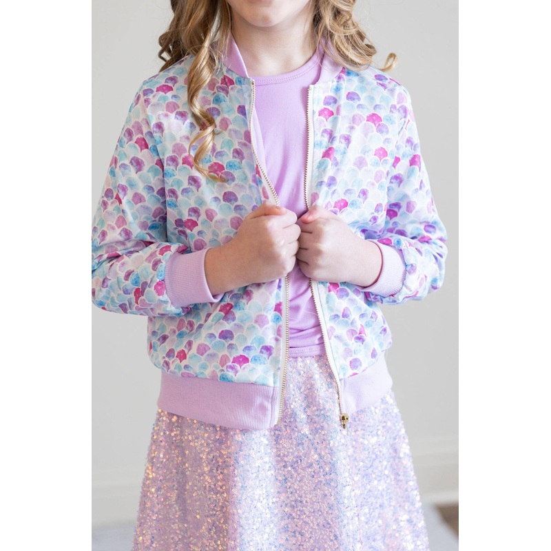 The perfect finishing touch to any outfit! Our Satin Jacket pairs great with twirl dresses, leggings, and skirts. Great for lightweight layering. Mix and Match our Mermaid Scales print collection for sisters, cousins, or BFFs.INSTRUCTIONS: Wear – Shine – Repeat FIT – FABRIC – CARE: * True to size * Polyester Blend * Hand Wash Cold/Lay Flat to Dry