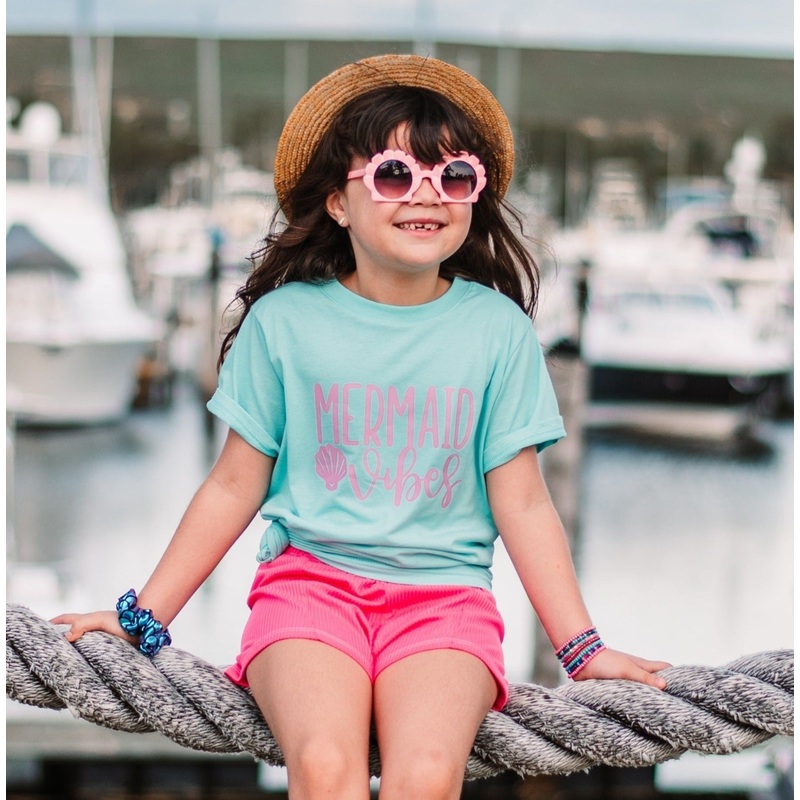 Mermaid Vibes trendy screen printed graphic tee.Rabbit Skin tees are true to size, soft and durable. ______________________________________________Kids Shirts - Graphic Tee for Girls - Kids Clothing - Girls Summer Clothing - Kids Summer Tee | Toddler Graph