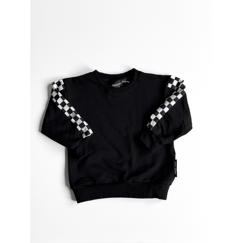 Turn up the style and let your little one lead the pack in the Midnight Crew a bold black crewneck built for high-energy kids with high-voltage style. Featuring standout checkered sleeves and an ultra-comfy fit, this piece brings the perfect mix of cool and cozy to their everyday rotation.