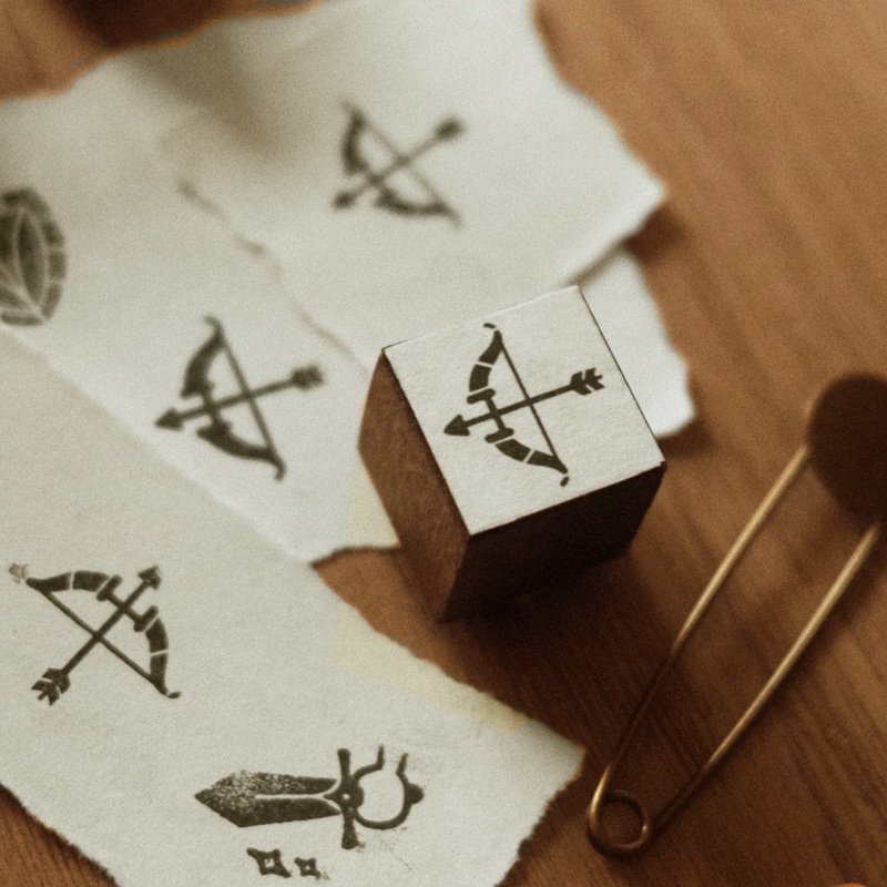 This 3/4 stamp design features a tiny but mighty bow & arrow. This rubber stamp is handmade at my home atelier, and comes with a Collectable Story Card.