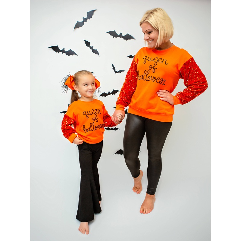 Spooky yet stylish, show off your love for Halloween with our Mommy & Me Queen of Halloween Sweater. This cozy and cute sweater is perfect for family photos or trick-or-treating with your little one. Rule over the holiday in matching style and comfort. Accessories not included. Materials: 97% Cotton 3% Spandex