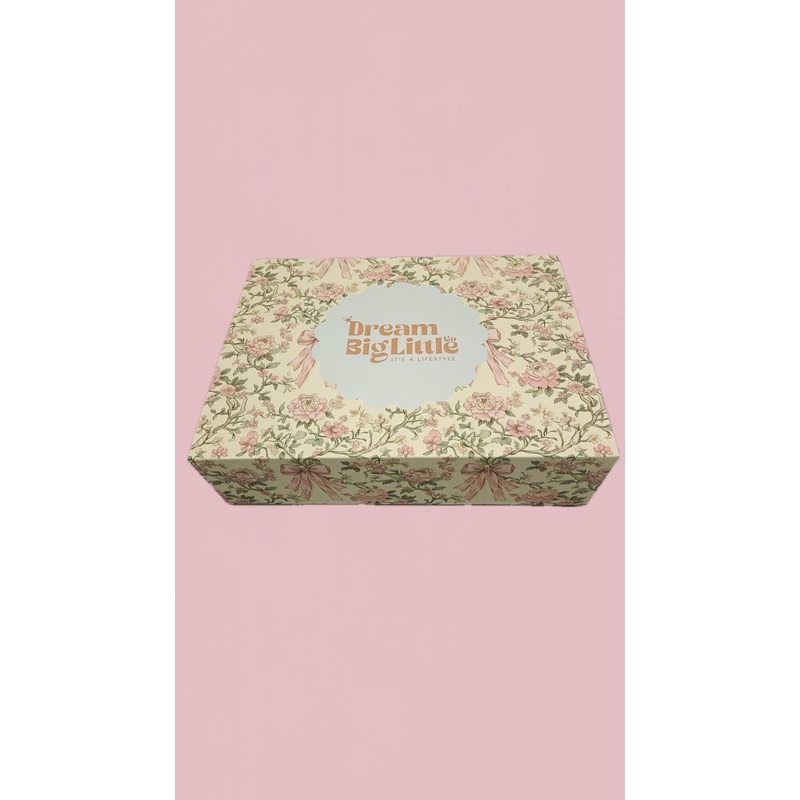 Front and center on the lid is our scalloped white label adorned with the Dream Big Little Co. logoadding a soft, signature touch to this refined and feminine design.