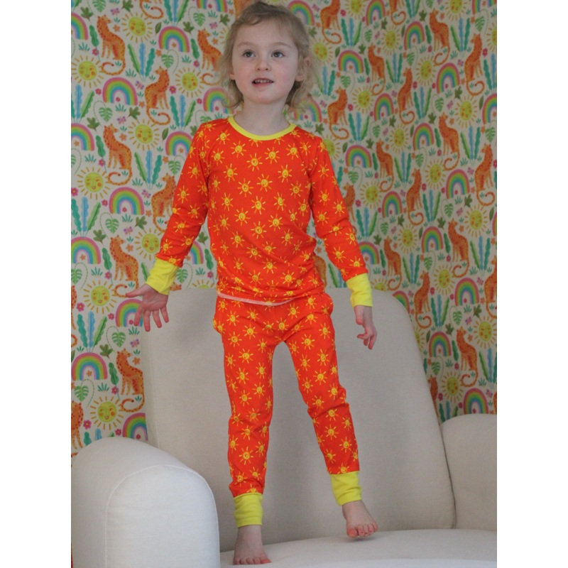 This cheerful sunshine print is designed in the kind of happy colors that kids reach for every time! This print was designed in tandem with the matching board book, Why Is the Sun Yellow? Kids can wear the softest jammies ever and curl up with the matching