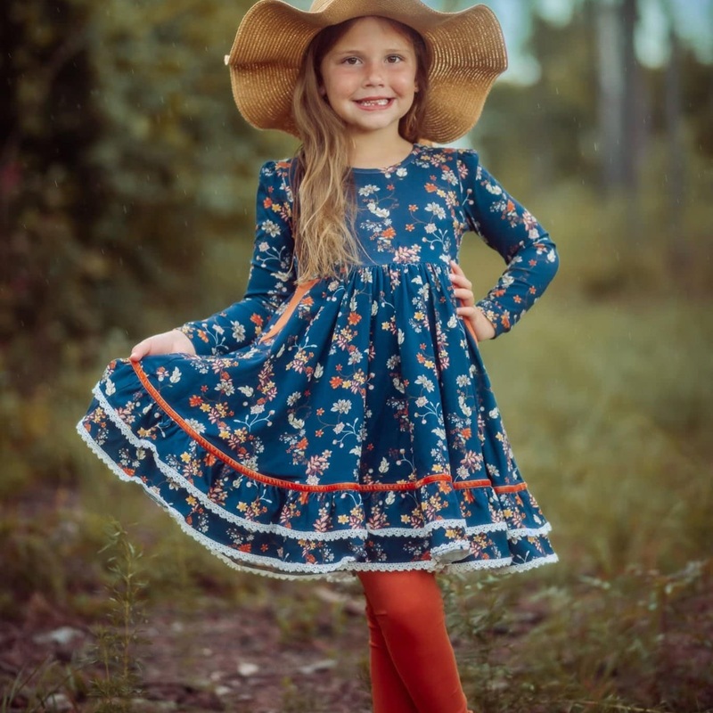 Navy floral Laila Twirl Set|12m|18m|2|3|4|5|6|7|8|10|12|14|16