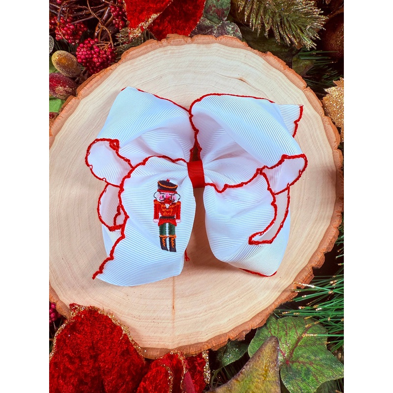 Add a touch of holiday magic with the Nutcracker Embroidered Moonstitch Hair Bow! This charming accessory features intricate embroidery inspired by the classic Nutcracker tale, stitched with care to bring festive cheer to any outfit. Perfect for twirling t