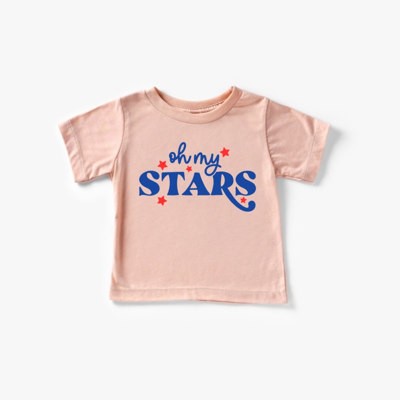Oh My StarsDetailsFeatures & Sizing*Crewneck, pullover styling*Short sleeves*Print as ShownMaterials & Care*Soft Feel *100% Cotton * Heather Colors: 52% Airlume combed and ring-spun cotton, 48% poly* Athletic Heather: 90% Airlume combed and ring-spun cotto