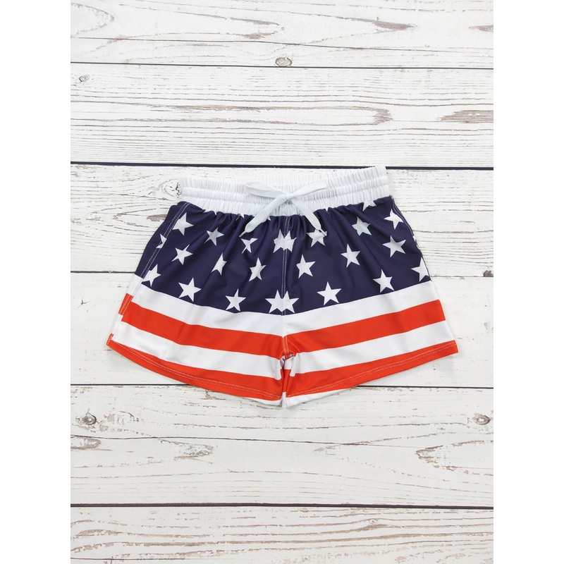 Patriotic 4Th Of July Boys Swim Shorts ETA: 8-10 Days These swim shorts feature a stylish patriotic design, perfect for celebrating the 4th of July. Made with high-quality materials, they are durable and comfortable, ensuring that your child can swim and p