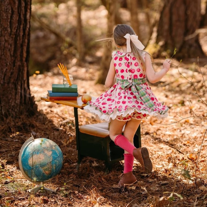 Linen cotton blend, super soft fabric! Button up back with roomy chest for easy fit. Tie on back to cinch waist. Twirl skirt, eyelet lace trims. Bloomer shorts 18m-5 and lace trim shorts 6-16.This is a presale which is made to order, please take your time