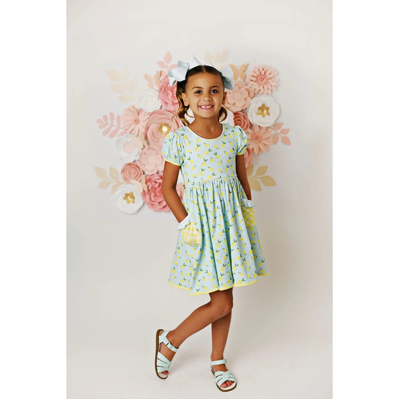 Discover style this season with Swoon Baby Clothing. This playful dress features a delightful lemon print with convenient side pockets and an adorable bow in the back, making it both stylish and functional. Perfect for sunny days and making a statement with every twirl!
