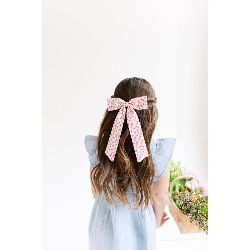 This **Longtailed Pink Daisy Hair Bow** is the perfect accessory for **springtime parties, family gatherings, or just adding some floral beauty to your childs everyday outfit.** Whether your little one is dressing up for a **birthday party, spring outing, or Easter celebration,** this bow will make their look extra special.